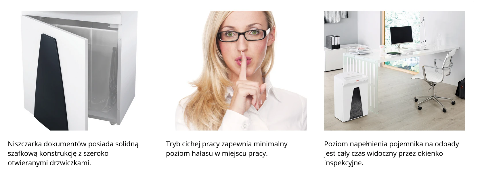 Ta najwyższej jakości niszczarka dokumentów odznacza się eleganckim wzornictwem i zapewnia bezpieczeństwo danych w otwartej przestrzeni biurowej. Dzięki mocnemu napędowi niszczy w cichy i niezawodny sposób duże ilości danych oraz może być używana przez grupy składające się z 8 osób. Opieka serwisowa w miejscu instalacji urządzenia.
